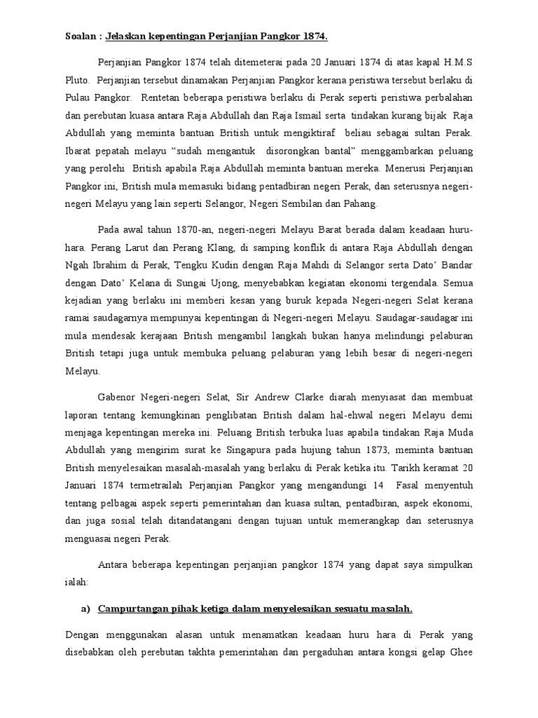 Latar Belakang Perjanjian Pangkor 1874 - Perjanjian Pangkor 1 0 Pengenalan Setiap Perkara Yang Berlaku Ada Sebab Musabab Yang Membentuk Atau Menjadikannya Satu Catatan Hidup Atau Peristiwa Course Hero : Latar belakang geografis perjanjian lama.. Karena adanya kabar yang di bawa oleh para saudagar muslim, bahwa tentara romawi akan menyerang semua daerah kekuasaan islam di jazirah arab, termasuk madinah, dengan membawa pasukan yang. Perjanji an pangkor 1874 1.0 pengenal an. Latar belakang perjanjian saragosa, antara lain diuraikan di bawah ini: Dewan keamanan pbb memerintahkan resolusi gencatan senjata antara belanda dan indonesia pada tanggal 1 salah satu dampak perjanjian renville bagi indonesia adalah perubahan bentuk negara indonesia. Bayangkan sebuah dvd dengan isi berkali ganda lebih elok siap dengan teks penerangan dan musik latar.
